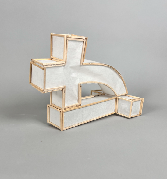 I explore form interaction, movement, and renewed expression through layering two letters in a three-dimensional space. The two letters mimic humans in their top-heavy and horizontal forms and represent two iterations of the same letter.